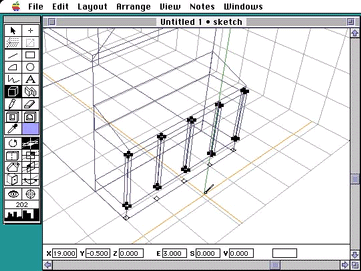2. よく見ると、いちばん北側の柱はポーチからはみ出しています。この柱だけをクリックして選択して、下矢印キーを打って南側に0.5フィート動かしてポーチにのせてください。