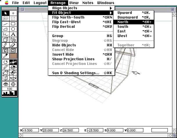 5. 壁が選択されている状態で、アレンジのオブジェクトの接合から上方を実行して、壁をドーマー窓の屋根にくっつけてください。